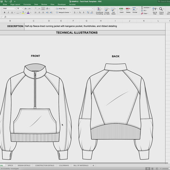 Excel Tech Pack Template for Fashion Designers | Includes Bonus Stitch Cards